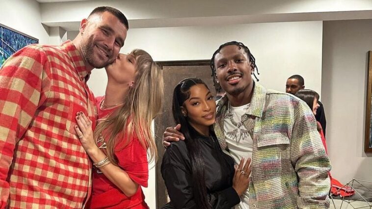 Obwohl sie sich persönlich noch nicht zu ihrer Beziehung geäußert haben, scheinen die beiden ihre Zuneigung nun öffentlich zu zeigen. Die Partnerin von Travis’ Football-Kollegen Mecole Hardman Jr., Chariah Gordon (25), teilte auf Instagram fröhliche Bilder, auf denen beide Paare gemeinsam zu sehen sind. Besonders auffällig: Taylor gibt Travis einen Kuss auf die Wange, während er stolz in die Kamera lächelt.